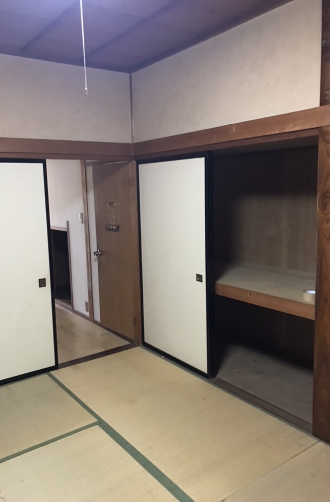 部屋の様子は下の写真のように食器や雑誌、日用雑貨など卓上・床に置かれており、他の部屋も大きなタンスや布団なども押入れにびっしり入っており、見かけ以上に家財道具か置いてある状態でした。