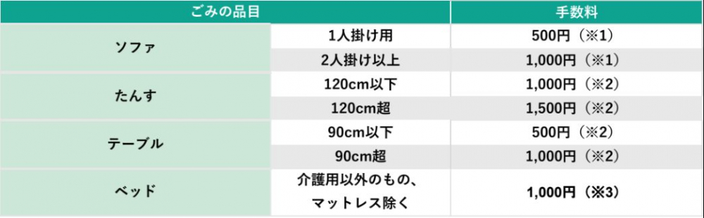 ※出典3:岡山市「粗大ごみ 粗大ごみ戸別収集手数料【は行】」