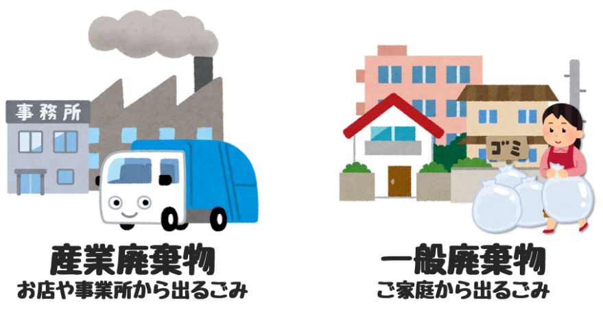 廃棄物はどこから出るかによって大きく『産業廃棄物』と『一般廃棄物』に分けられます。